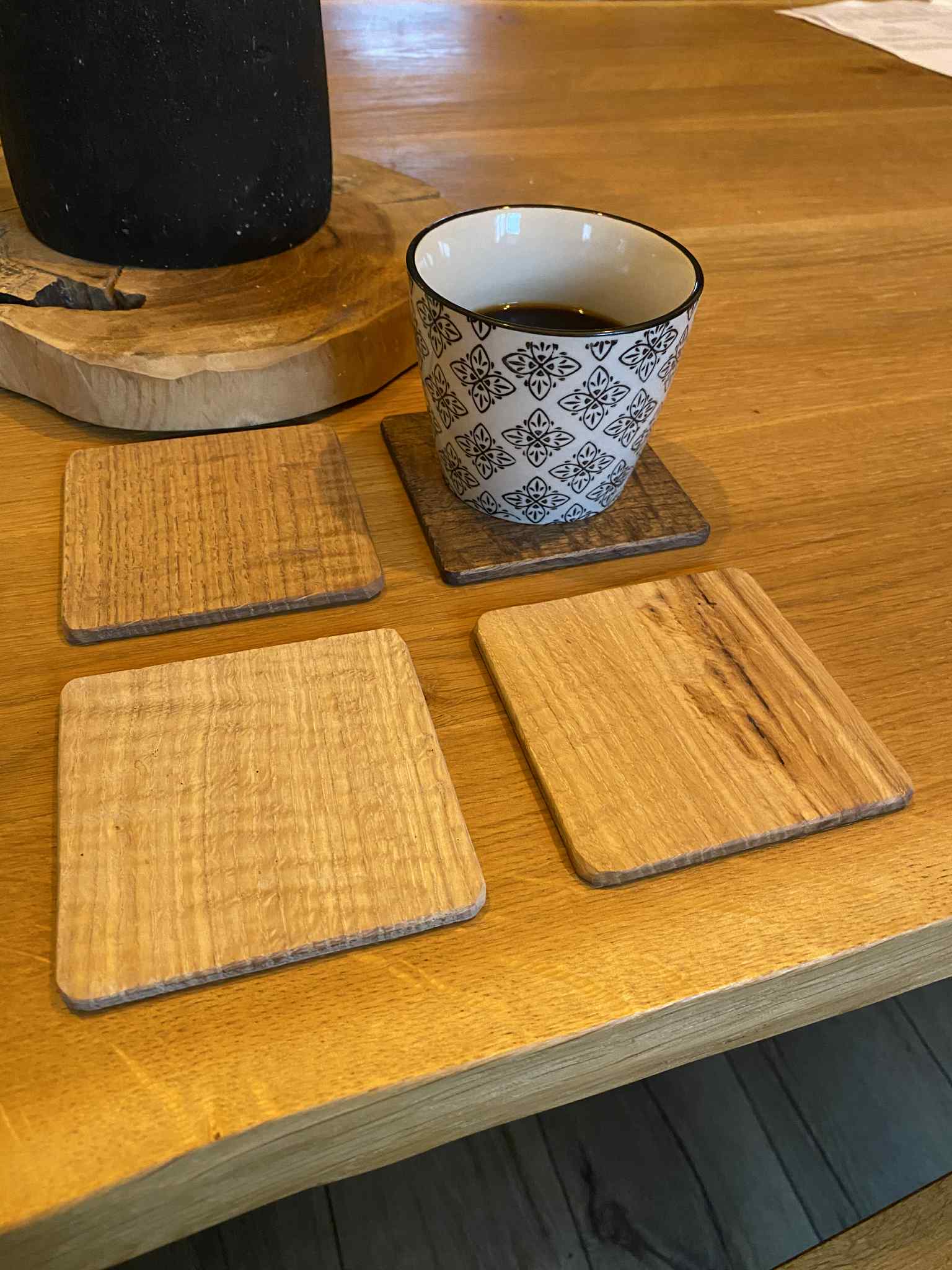 Je fabrique ces dessous de verre en chêne massif, élégants et durables, parfaits pour protéger votre table tout en apportant une touche naturelle et chaleureuse à votre intérieur.